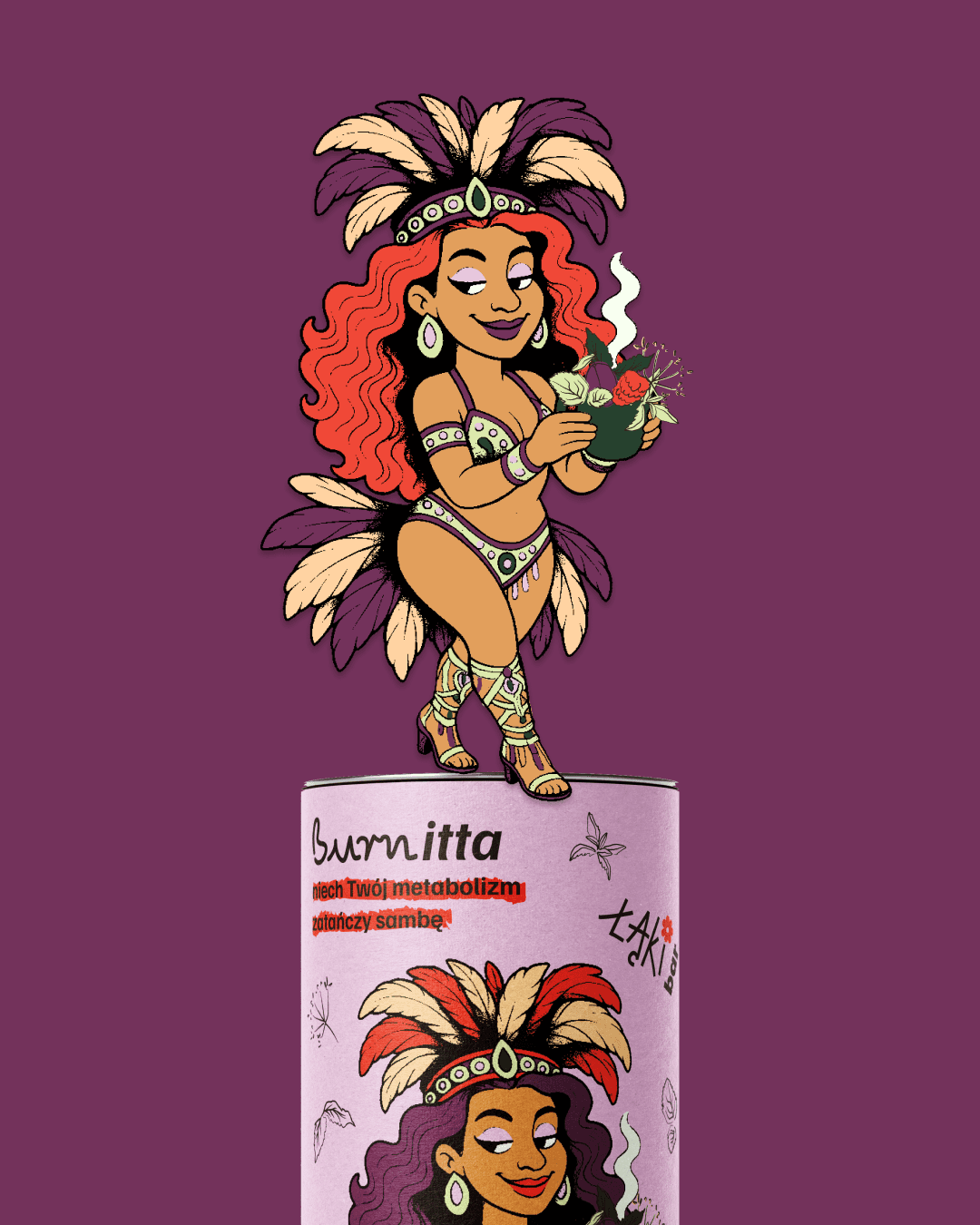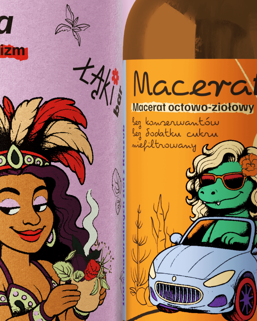 Powstały 3 etykiety na 3 produkty. Każdy z wyjątkową postacią. Ilustracje maja komiksowy charakter. Odnoszą się do działania produktów oraz ich składu. Są spójne z silnym, energetycznym i radosnym charakterem marki.