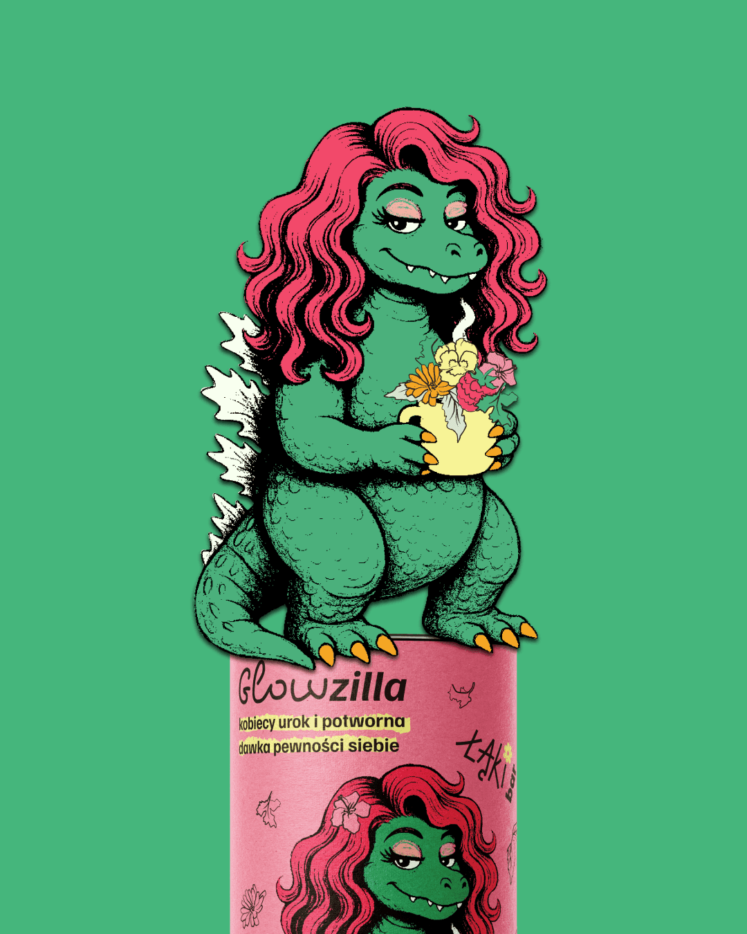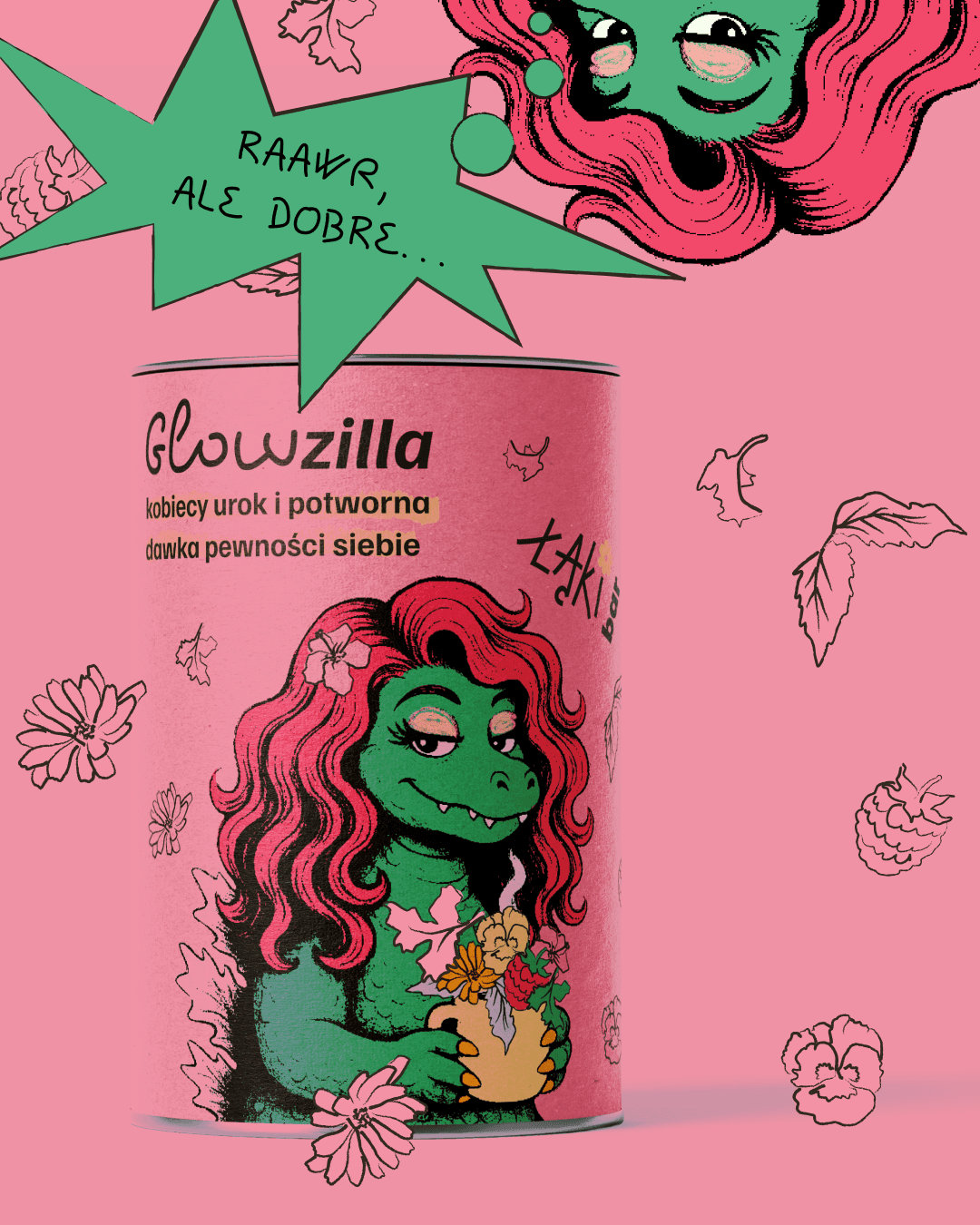 → przekucie wizji w spójną koncepcję – w głowie klientki pojawiły się dwie wyraziste postacie: Glowdzilla i Burnitta, które miały reprezentować charakter marki i poszczególne produkty